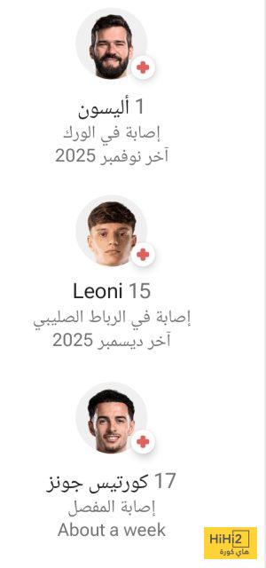 فيما يلي قائمة إصابات الريدز قبل مواجهة ريال مدريد حتى الآن :