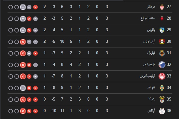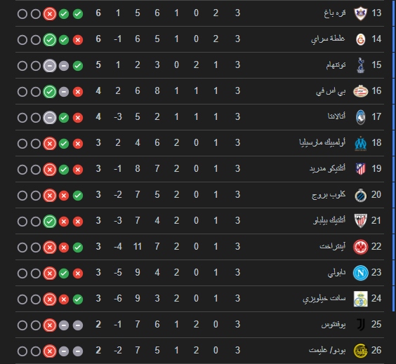 ترتيب دوري ابطال اوروبا حاليا :