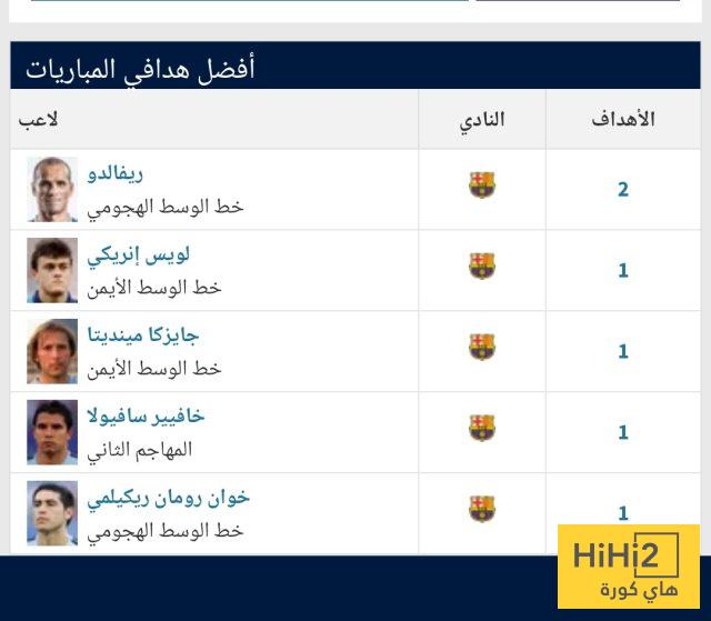 ويتصدر ريفالدو ، نجم برشلونة السابق ، قائمة أفضل الهدافين في تاريخ مواجهات الفريقين ، حيث سجل هدفين .