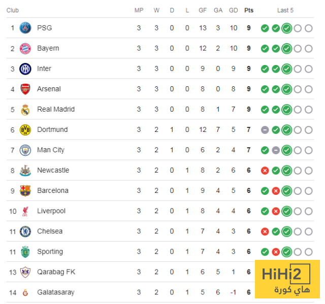 برشلونة يحتل المركز التاسع برصيد 6 نقاط ، وسجل 9 أهداف ، واستقبل 4 .