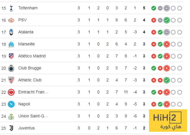كلوب بروج يحتل المركز الـ28 برصيد 3 نقاط ، وسجل 5 أهداف ، واستقبل 7 .