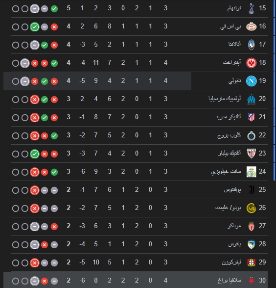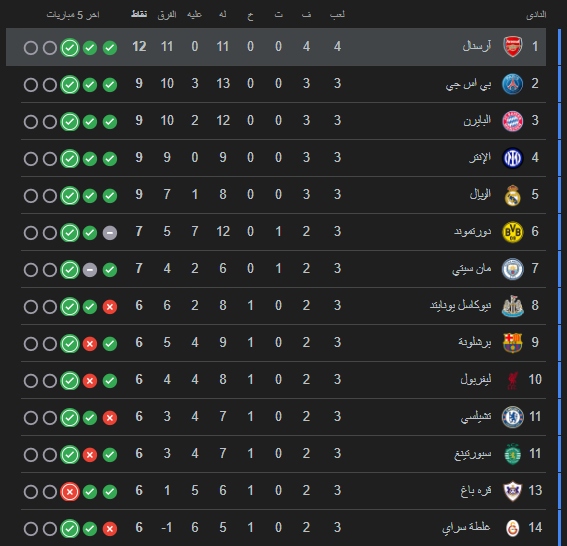 جدول ترتيب دوري ابطال اوروبا الآن: