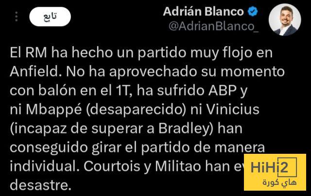 “لم ينجح مبابي الذي كان شبه غائب، ولا فينيسيوس الذي لم يتمكن من تجاوز برادلي، في قلب المباراة فرديًا”.