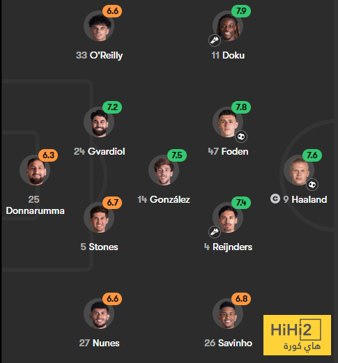 تقييم لاعبو مانشستر سيتي ضد دورتموند في الشوط الاول :