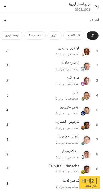 ويتصدر فيكتور أوسيمين نجم غلطة سراي قائمة هدافي دوري أبطال أوروبا هذا الموسم برصيد 6 أهداف .
