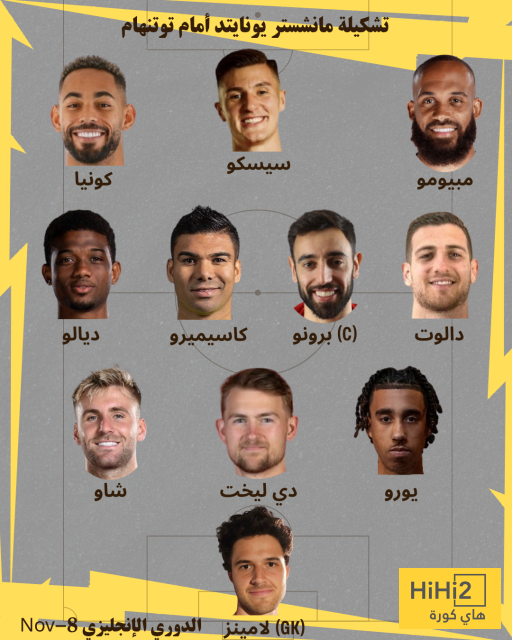 هاي كورة – كشف موقع هاي كورة عن تشكيلة مانشستر يونايتد المتوقعة لمواجهة توتنهام ضمن منافسات الجولة الحادية عشرة من بطولة الدوري الإنجليزي الممتاز ، حيث سيلتقي الفريقان غدًا السبت وفق التوقيت المدرج في جداول الموقع لكل دولة حول العالم .