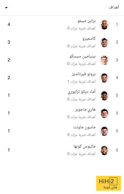 فيما يلي هدافي مانشستر يونايتد في الدوري قبل اللقاء :