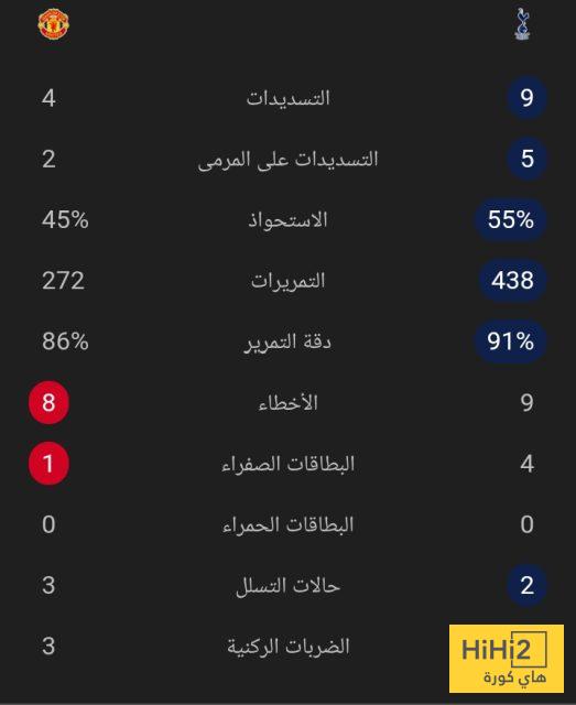توتنهام هوتسبير في المركز الثالث برصيد 18 نقطة بينما مانشستر يونايتد في المركز السابع بنفس الرصيد.
