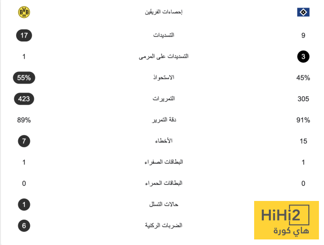 وجاءت إحصائيات المباراة لتؤكد تفوق العملاق الأصفر على اللقاء ، لكن هذا لم يساعده في الحصول على فوز ثمين .