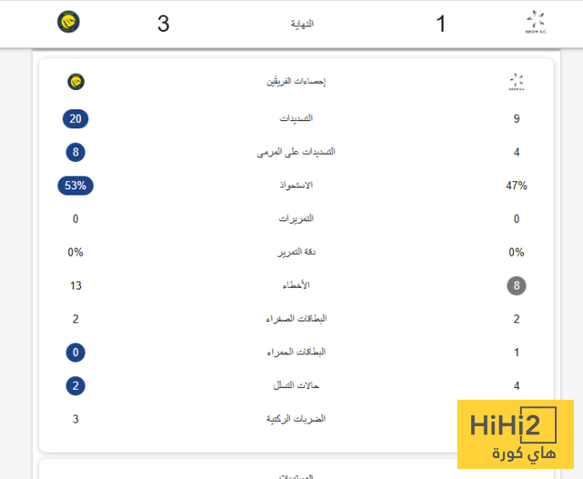 هاي كورة: تمكن نادي النصر من التفوق على نيوم في الإحصائيات بعدما فاز بنتيجة (3-1)، ضمن منافسات الجولة الثامنة من بطولة دوري روشن السعودي للمحترفين، على ستاد مدينة الملك خالد الرياضية.