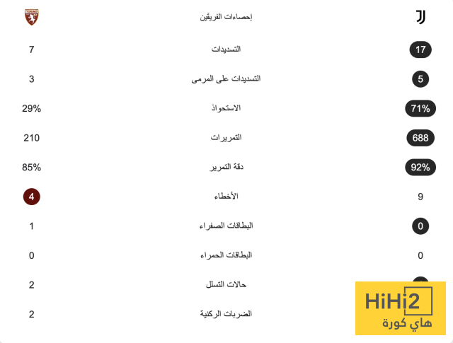 وشهدت الإحصائيات تفوق كبير للسيدة العجوز على جاره ، لكن الاستحواذ والتسديد الكثير لم يكن كافيًا لتخرج فائزة من المباراة .