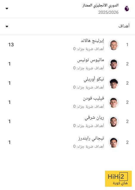 ويتصدر النجم النرويجي هالاند قائمة هدافي السيتي في الدوري هذا الموسم ، حيث سجل 13 هدفًا حتى الآن .