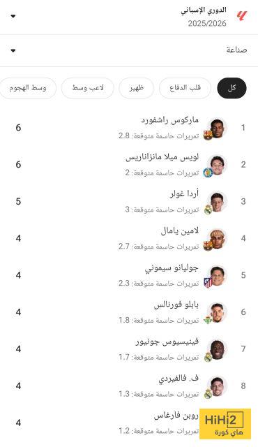 ويأتي أردا غولر لاعب ريال مدريد خلفهما ، حيث قدم 5 تمريرات حاسمة .