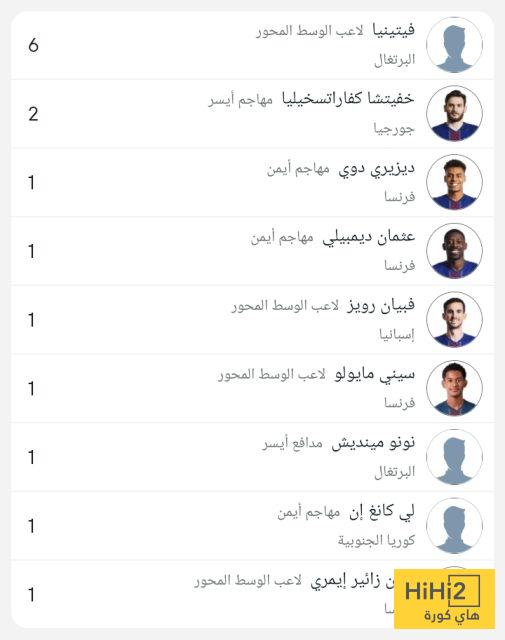 هاي كورة : يتصدر لاعب الوسط ، فيتينيا ، قائمة مميزة مع باريس سان جيرمان في الدوري الفرنسي هذا الموسم ، حيث يعد أكثر من صنع أهداف في البطولة .