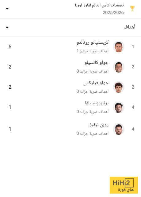 ويتصدر كريستيانو رونالدو قائمة هدافي منتخب البرتغال في تصفيات المونديال ، حيث سجل 5 أهداف حتى الآن .