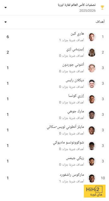 ويتصدر هاري كين قائمة هدافي إنجلترا في تصفيات المونديال ، حيث سجل 6 أهداف حتى الآن .
