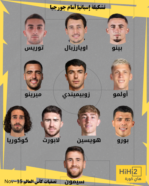 هاي كورة – كشف موقع هاي كورة عن تشكيلة منتخب إسبانيا المتوقعة لمواجهة جورجيا ضمن تصفيات بطولة كأس العالم 2026 ، حيث سيلتقي المنتخبان غدًا السبت وفق التوقيت المدرج في جداول الموقع لكل دولة حول العالم .