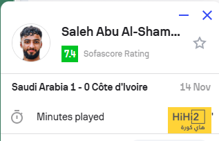 هاي كورة : حصل صالح أبو الشامات لاعب المنتخب السعودي على أعلى تقييم حيث ظهر بأداء مميز وسجل هدف بالدقيقة 8 عن طريق صالح أبو الشامات، في اللقاء الودي الذي يجمع بينهما على ملعب الإنماء.