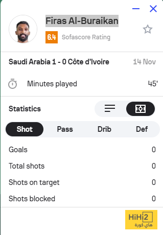 هاي كورة : لم يظهر فراس البريكان بالمستوى المأمول في مواجهة المنتخب السعودي أمام منتخب ساحل العاج، إذ بدا بعيدًا عن خطورته المعتادة وافتقد للحضور الهجومي على ملعب الإنماء.