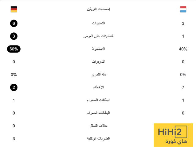 وبالرغم من تفوق المانشافت على منافسه كما يظهر في إحصائيات الشوط ، لكن لاعبوه ضلوا طريق المرمى .
