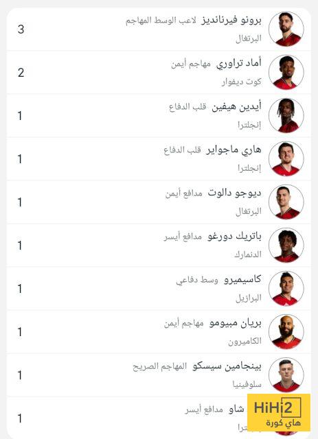 هاي كورة : يتصدر النجم ، برونو فيرنانديز ، قائمة أكثر اللاعبين صناعة للأهداف مع مانشستر يونايتد في الدوري الإنجليزي الممتاز .