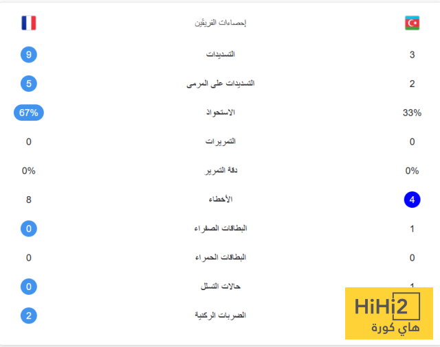 احصائيات الشوط الاول من مباراة فرنسا و أذربيجان