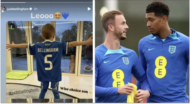 وكان اسم جود بيلينغهام مطبوعًا على ظهر القميص، حتى أن ليو قام بالاحتفال المميز للاعب خط الوسط بمد ذراعيه – وهي إشارة واضحة إلى من هو لاعبه المفضل في الوقت الحالي.