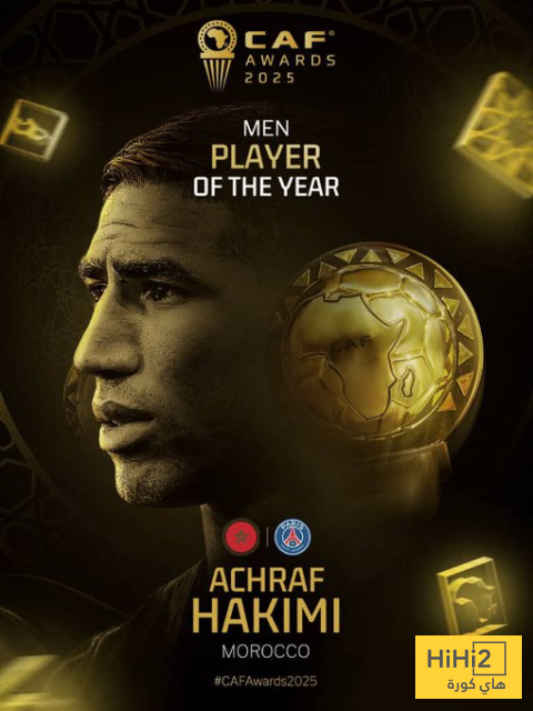 هاي كورة- أعلن الاتحاد الافريقي لكرة القدم ، رسميا ، عن تتويج المغربي اشرف حكيمي نجم باريس سان جيرمان بجائزة افضل لاعب افريقي لعام 2025 ، متفوقا على محمد صلاح و فيكتور اوسيمين .