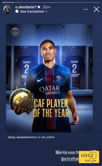 وحرص عثمان ديمبلي نجم باريس سان جيرمان وصاحب الكرة الذهبية على تهنئة زميله في الفريق بمنشور عبر حسابه الرسمي على انستغرام وكتب قائلا :
