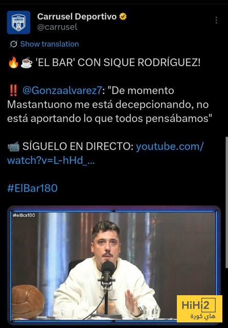 ” في الوقت الحالي، ماستانتونو يخيب أملي كثيرًا ، فهو لا يقدم ما كنا نعتقده جميعًا “.