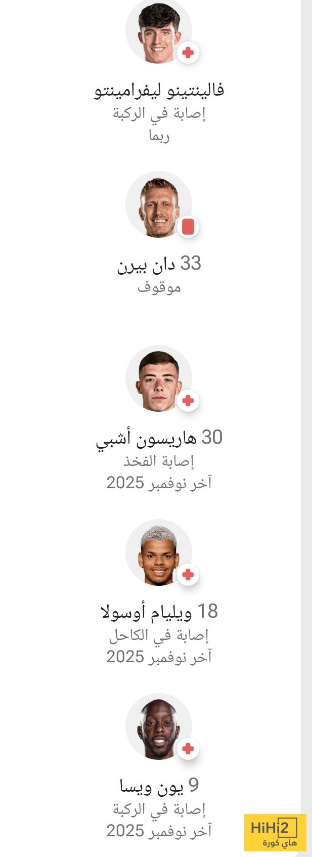 فيما يلي قائمة غيابات نيوكاسل ضد السيتي: