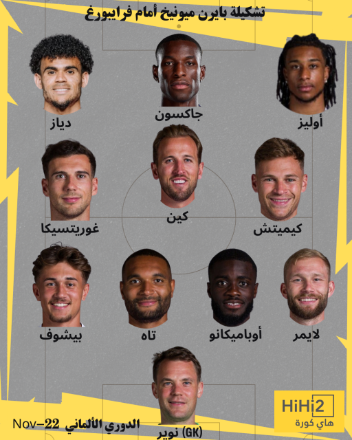 هاي كورة – يستعد بايرن ميونخ لاستئناف مباريات الدوري الألماني بمواجهة فرايبورغ في الجولة الحادية عشرة ، وستقام المباراة وفق التوقيت المدرج لها على جداول هاي كورة لكل دولة في العالم .