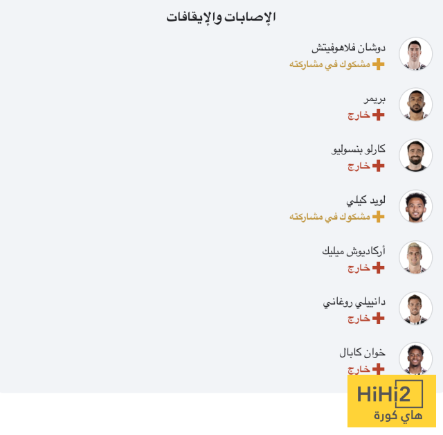 ويأتي على رأس الغائبين دوشان فلاهوفيتش الذي أصبحت مشاركته محل شك في اللقاء بسبب إصابته مع منتخب صربيا .