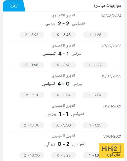 نتائج آخر خمس مواجهات بين تشيلسي وبيرنلي