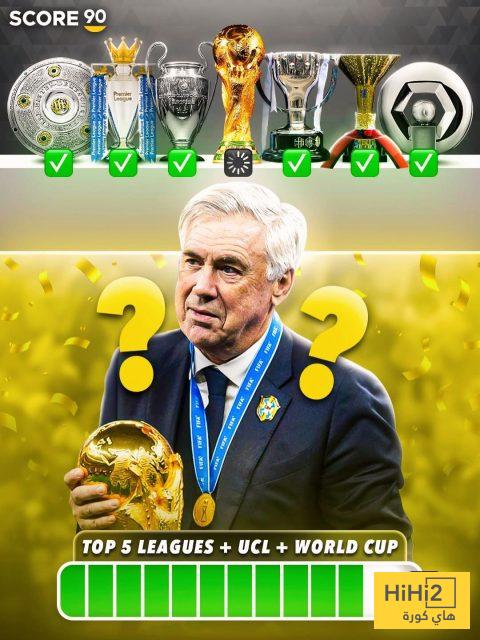 بعد موافقته على تدريب منتخب السيليساو في اول تجربة له مع المنتخبات كمدرب رئيسي يحتاج انشيلوتي للفوز بلقب المونديال نسخة العام 2026 ليختتم مسيرته احسن ختام حيث يكون قد نال جميع الالقاب المحلية و القارية الكبيرة على مستوى الاندية و المنتخبات .