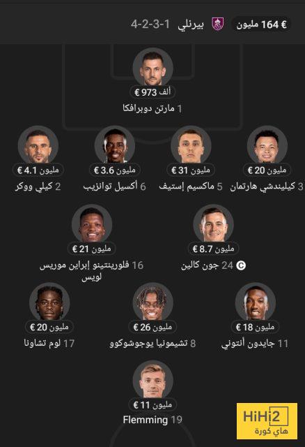 القيمة السوقية لـ تشكيلة بيرنلي أمام تشيلسي اليوم في الدوري الانجليزي الممتاز بلغت ١٦٤ مليون يورو موزعة على اللاعبين كالتالي:
