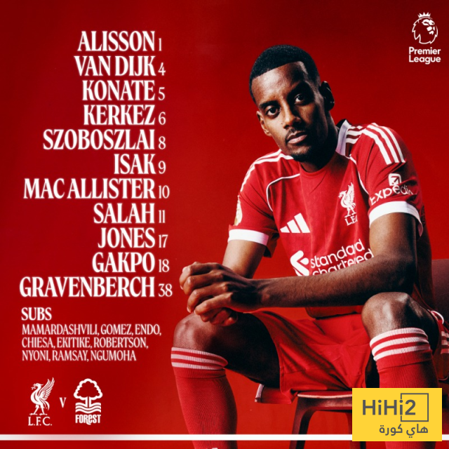 تشكيلة ليفربول الرسمية للقاء نوتينغهام فورست