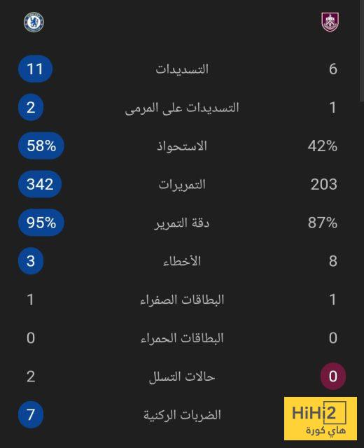 إليكم احصائيات 60 دقيقة بين تشيلسي و بيرنلي :