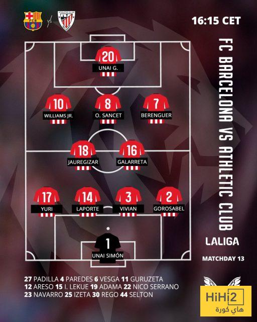 تشكيلة اتلتيك بيلباو الرسمية للقاء برشلونة