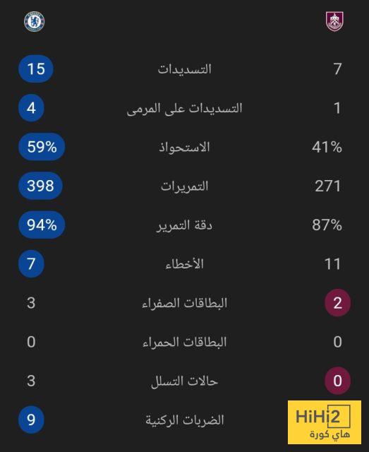 تشيلسي في المركز الثاني برصيد 23 نقطة بينما بيرنلي في المركز السابع عشر.