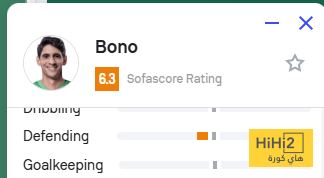 هاي كورة: سجل ياسين بونو ظهوراً باهتاً في الشوط الأول من مباراة الهلال أمام الفتح، بعدما خرج بأقل تقييم بين لاعبي الفريق، الحارس المغربي الذي اعتاد على التألق وقيادة الدفاع لم يكن في يومه.