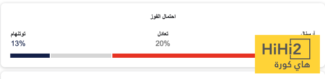 نسبة فوز أرسنال 67% ، ونسبة فوز توتنهام 13% ، ونسبة التعادل 20% .