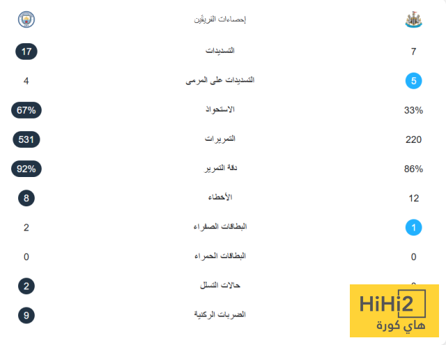 احصائيات مباراة مانشستر سيتي و نيوكاسل في البريميرليج