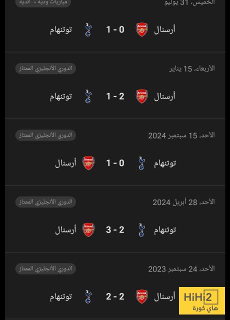 إليكم نتائج أخر 5 مباريات بين أرسنال و توتنهام :