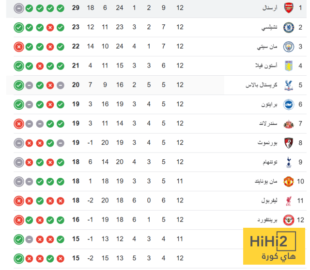 ترتيب الدوري الانجليزي بعد فوز ارسنال على توتنهام