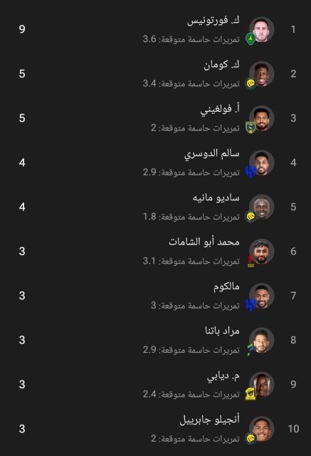 فيما يلي قائمة أكثر لاعبي الدوري السعودي صناعة للأهداف حتى الآن :