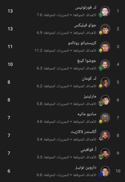 هاي كورة – شهدت قائمة أكثر اللاعبين مساهمة تهديفية في دوري روشن المحترفين السعودي ، بعد مرور 9 جولات منذ انطلاق البطولة في أغسطس 2025 ، سيطرة نصراوية بامتياز إذ ضمت كلًا من : ” جواو فيليكس ، كريستيانو رونالدو ، كينغسلي كومان ، ساديو ماني ” .