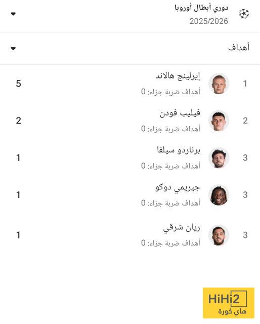 ويتصدر إيرلينغ هالاند قائمة هدافي السيتي في دوري الأبطال هذا الموسم ، حيث سجل 5 أهداف حتى الآن .