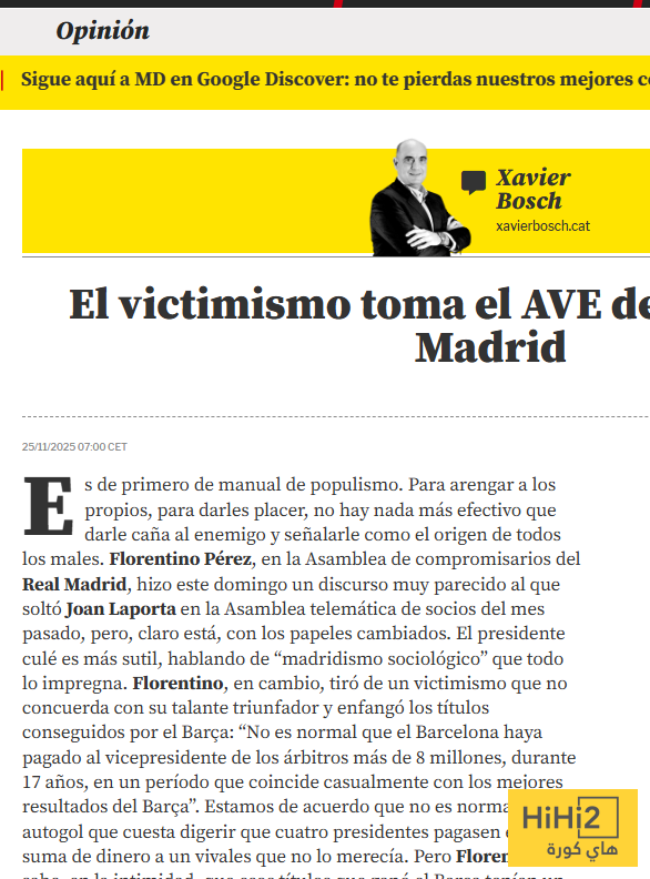 خوان لابورتا في اجتماع الأعضاء الإلكتروني الشهر المنصرم ، ولكن بالطبع مع عكس الأدوار . رئيس برشلونة كان أكثر دهاءً ، متحدثًا عن ” مجتمع مدريد ” وتخلله لكل شيء. من ناحية أخرى ، لجأ فلورنتينو إلى تجسيد شخصية الضحية التي لا تتماشى مع سلوكه المتفائل ، وشوه الألقاب التي حققها البارسا قائلا : “ليس من الطبيعي أن يدفع برشلونة لنائب رئيس لجنة الحكام أكثر من 8 ملايين يورو، لمدة 17 عامًا، في فترة تتزامن صدفة مع أفضل نتائج الفريق الكتالوني “. نتفق على أنه ليس من الطبيعي ، وأنه جرح ذاتي يصعب ابتلاعه ، أن يدفع أربعة رؤساء هذا المبلغ من المال لمحتال لا يستحقه . لكن فلورنتينو يعرف في أعماقه، أن تلك الألقاب التي فاز بها برشلونة كان لها اسم واحد أبقاه مستيقظًا في الليل : ليو ميسي . إلى جانب تشافي وإنييستا وبوسكيتس ورفاقهم . إذا كان من المفاجئ أن ريال مدريد فاز بدوري أبطال أوروبا أكثر من ألقاب الدوري خلال تلك السنوات ، فذلك ببساطة لأنهم لم يواجهوا برشلونة أبدًا في أوروبا . كان هذا حظهم . في العام الوحيد الذي التقيا فيه ، سجل ميسي هدفين في البرنابيو .