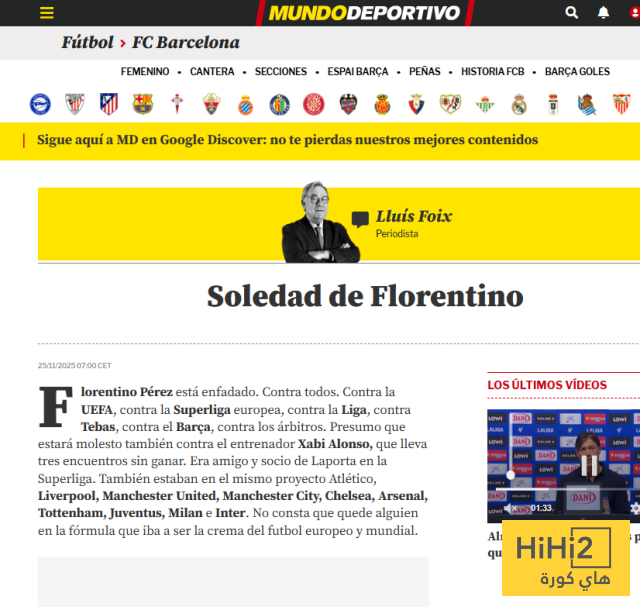 هل فلورنتينو وحيد أم معزول ؟ نسبيًا . لديه مقصورة كبار الشخصيات في البرنابيو ، ومركز القوة الاقتصادية والاجتماعية لريال مدريد ، ورأي عام قوي متأثر بتحيز العديد من وسائل الإعلام ، وقناته التلفزيونية الخاصة ، وسجل أوروبي لا يُشكك فيه . إذن لماذا شنّ هذا الهجوم “على الجميع” ؟